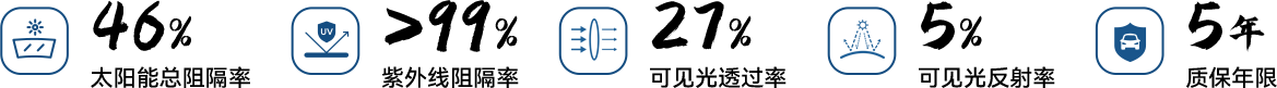 *产品参数基于样品贴在3毫米白玻,根据IWFA国际窗膜协会推荐NFRC和ASTM E903标准测量。